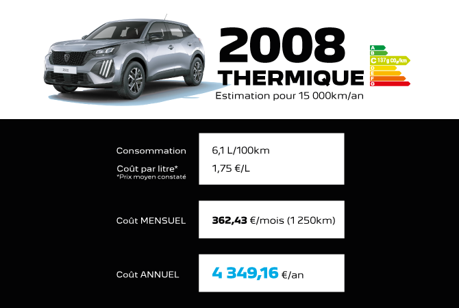L'avenir de la mobilité est électrique ! Pour vous aider à faire un choix éclairé, nous avons comparé 2008 électrique avec son équivalent thermique selon des critères identiques. Découvrez comment l'électrique se distingue par ses avantages économiques, écologiques et pratiques, tout en simplifiant vos déplacements au quotidien